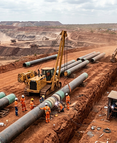 Installation of 10 KM of pipe to deliver water to processing equipment